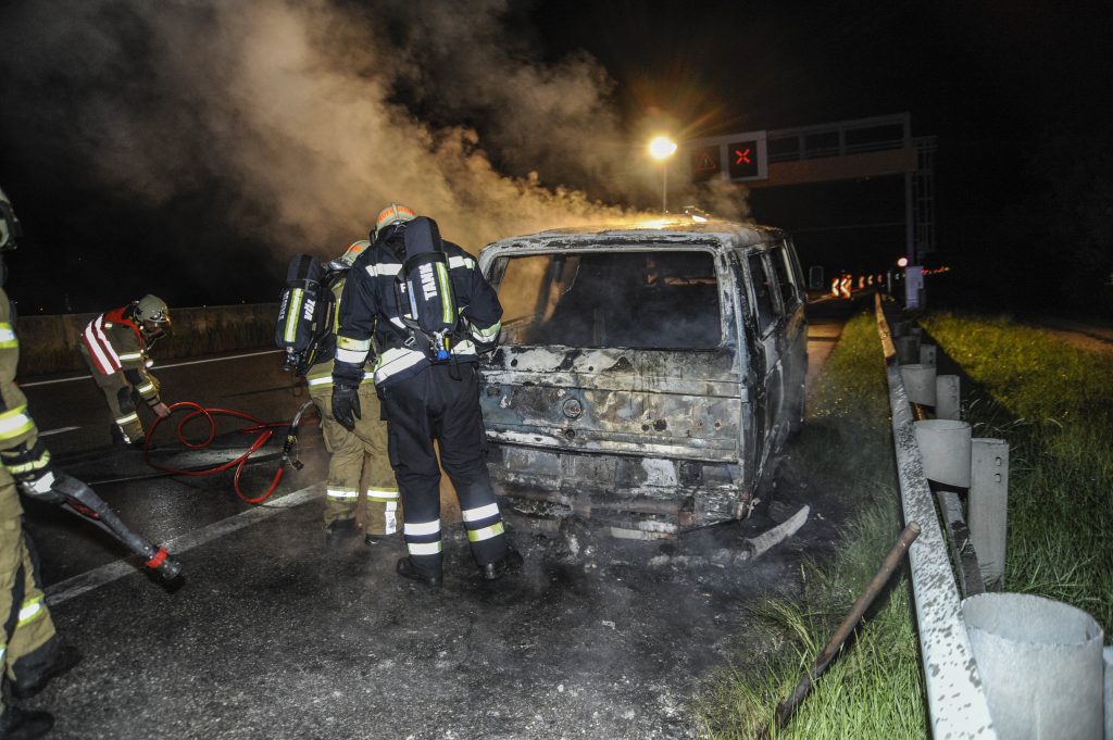 In der Nacht von Sonntag auf Montag kam es auf der Inntalautobahn zwischen Völs und Kematen zu einem Autobrand. Ein VW-Bus stand im hinteren Teil aus noch ungeklärter Ursache in Flammen. Die Feuerwehr Völs war rasch zur Stelle und brachten das Geschehen unter Kontrolle. Personen wurden nicht verletzt, am Fahrzeug entstand Totalschaden. Fotos: zeitungsfoto.at