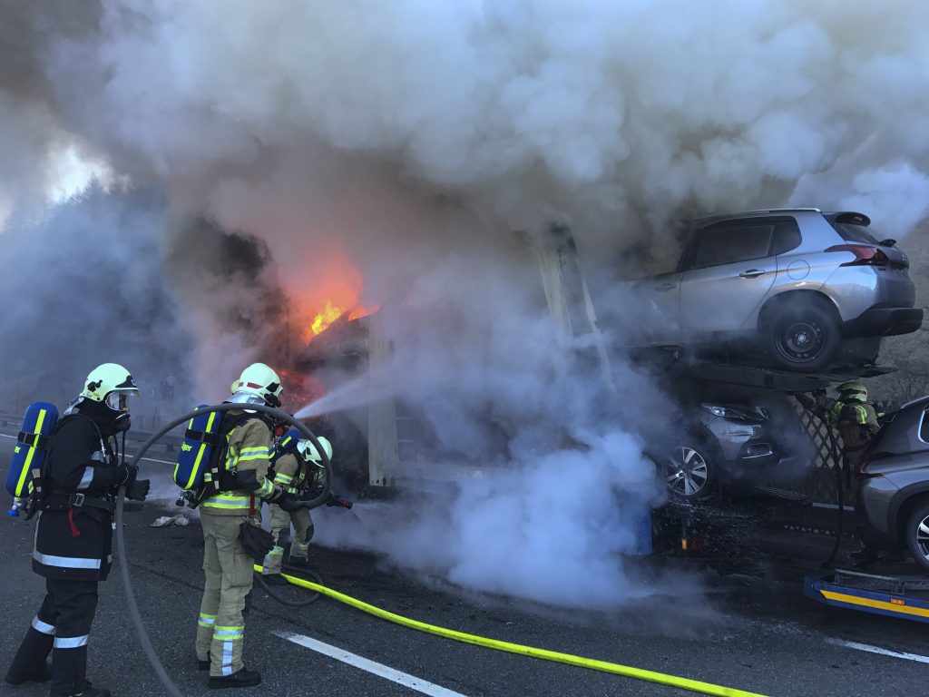 Brennerautobahn: Brand am Autotransporter