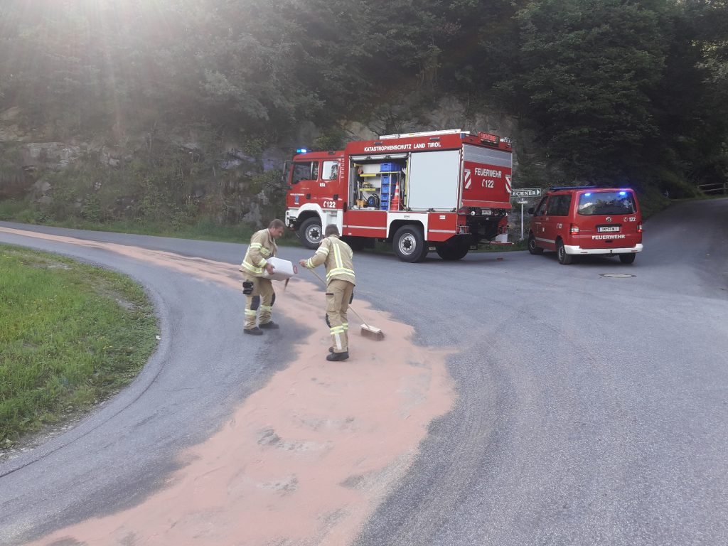 Eine über drei Kilometer lange Hydrauliköl-Spur, die von einen defekten Betonmischwagen verursacht wurde, forderte die FF Wenns am späteren Mittwochnachmittag gegen 17 Uhr. Der äußerst rutschige Öl-Austritt verteilte sich entlang der L17 Piller Landesstraße vom Dorfzentrum (auf rund 1000 Meter Seehöhe) entlang der Landes- und Gemeindestraße bis zum Ortsteil Tränk (auf rund 1230 Meter Seehöhe). „Durch […]