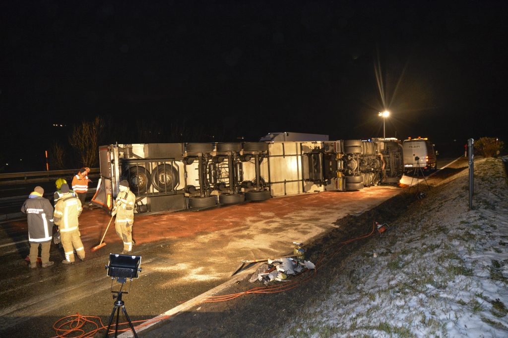 Ein 53-jähriger Grieche lenkte am 21.11.2017 gegen 5 Uhr ein Sattelkraftfahrzeug (Kühlfahrzeug) auf der A13 in Richtung Brenner. Das Kühlfahrzeug war mit ca. 24 Tonnen Schweinefleisch beladen. Auf Höhe des Parkplatzes Wipptalerhof verlor der Fahrer auf Grund eines Sekundenschlafes die Kontrolle über den Lkw, der an den rechten Fahrbahnrand geriet und gegen den Randstein prallte. Das […]