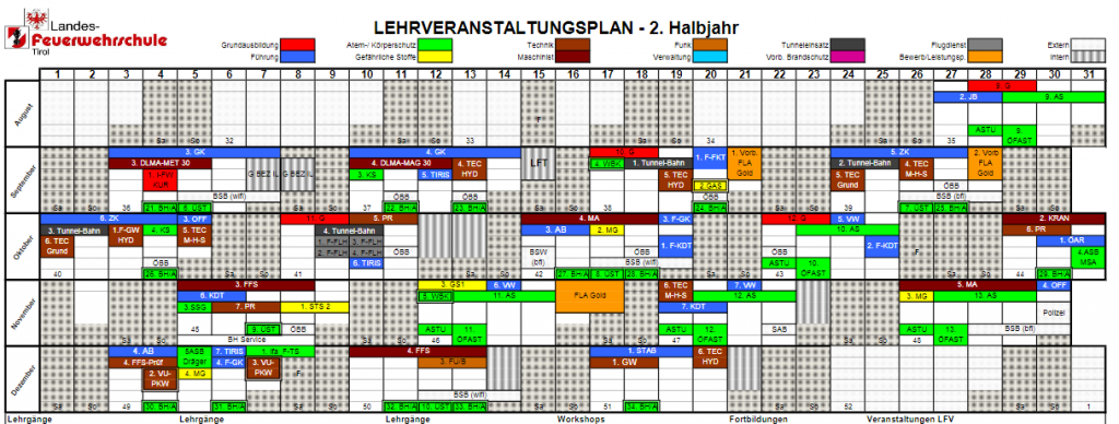 Der Lehrveranstaltungsplan für das zweite Halbjahr 2018 wurde in der 217. Schulausschusssitzung beschlossen und kann auf unserer Website bzw. in Office-365 eingesehen und heruntergeladen werden. Die Lehrgänge sind bereits im FDIS eingegeben und werden in der KW 16 freigeschalten. In der Zwischenzeit kann die terminliche Abklärung (z.B. mit dem Arbeitgeber) durch die Lehrgangsinteressenten erfolgen, um […]