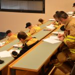Die Teilnehmer müssen schriftlich 5 Beispiele zum Thema "Löscheinsatz" berechnen.