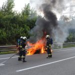 Zu einem Pkw-Brand auf der Autobahn A12 im Bereich der Simmering-Galerien wurde die Feuerwehr Silz am 5. August um 17:50 Uhr per Pager alarmiert.