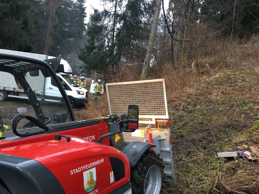 Technisches Gerät und viele helfende Feuerwehrhände brachten den Transporter schließlich wieder in die richtige Spur!