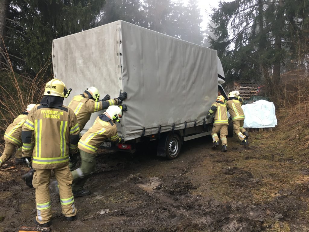 Vor kurzem wurde die Feuerwehr Landeck von der Polizei zu einer Hilfeleistung alarmiert, da ein rumänischer Lenker mit seinem Kleintransporter auf einer sehr unwegsamen und nur mit Allradfahrzeugen befahrbaren Forststraße stecken blieb.