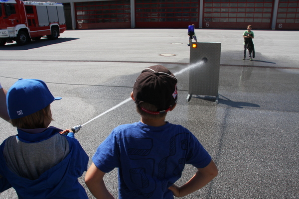Am Montag den 01.07.2013 wurde dieser Besuch von den Schülerinnen und Schülern und dem Lehrpersonal eingelöst. Nach einer kurzen Begrüßung und Einführung konnten sich die Kinder an verschiedenen Stationen austoben und ihre Geschicklichkeit im Umgang mit verschiedenen Geräten und Armaturen unter Beweis stellen.
