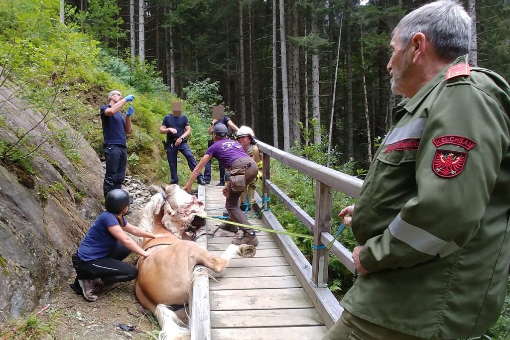 Am 17.08.2020 vormittags heulten in der Kelchsau die Sirenen. Grund für die Alarmierung war ein Pferd, welches beim Überqueren einer Fußwegbrücke abgerutscht ist und mit den Beinen stecken blieb. Beim Eintreffen der Feuerwehr trafen man zusätzlich noch auf eine verletzte Person, die allerdings schon von anwesenden Ersthelfern betreut wurde. Da sich das Pferd immer wieder stark zur Wehr setzte und […]