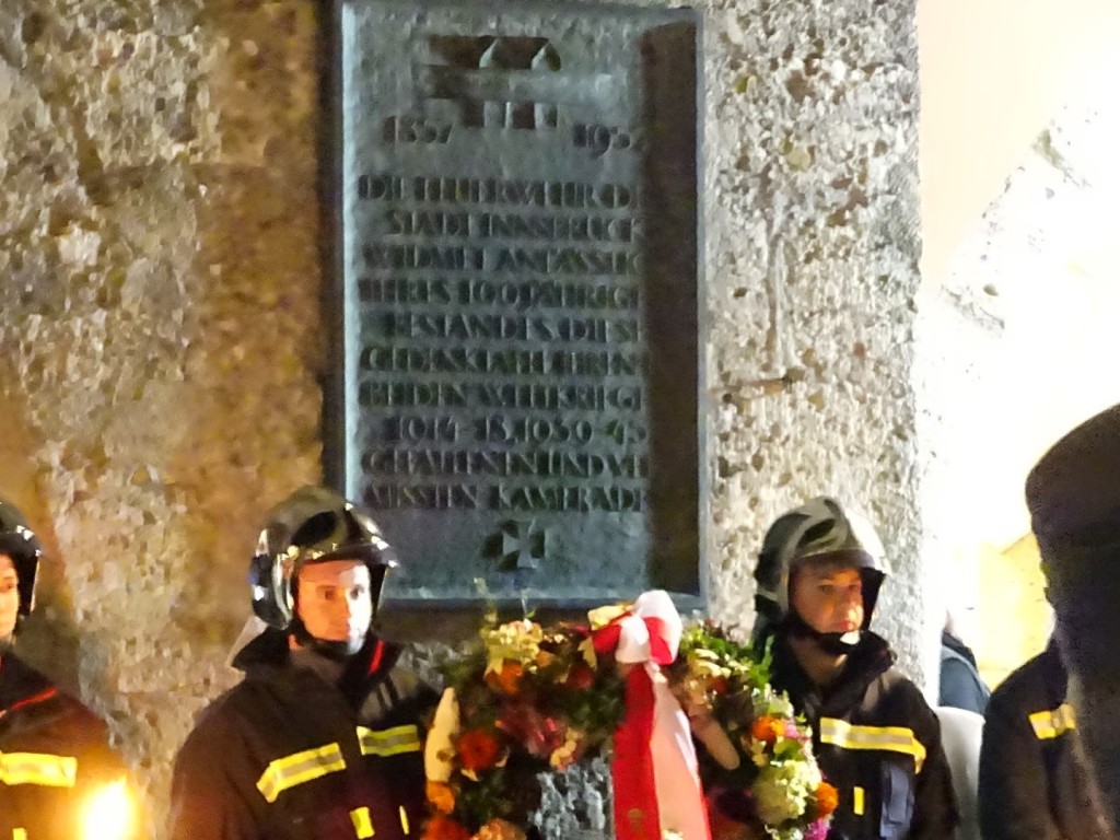 Vor dem altehrwürdigen Stadtturm mit der Gedenktafel der Feuerwehr Innsbruck für ihre in den beiden Weltkriegen gefallenen und vermissten Kameraden, wurde vor wenigen Tagen wieder aller verstorbenen Feuerwehrkameraden gedacht. Alles darüber steht HIER. Fotos: Siegfried Nalter