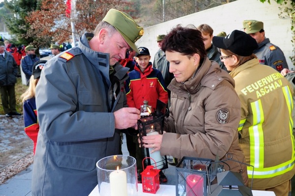 Dass dieses Licht als ganz besonderes Zeichen der Friedenshoffnung im Landes-Feuerwehrverband Tirol nach einer gemeinsamen Andacht in der LFS Tirol in Telfs an die Feuerwehrjugend aus ganz Tirol weitergegeben wird, gehört bereits zur Tradition. Diakon Johannes Schwemberger spendete den Segen, bevor er und Landes-Feuerwehrkommandant LBD Ing. Peter Hölzl das Friedenslicht in den mitgebrachten Laternen der Tiroler Feuerwehrjugend entzündeten.