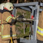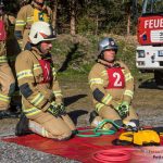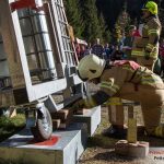 Und zum Schluss wird neben den theoretischen Fragen für die Gruppenkommandanten und Maschinisten noch ein Verkehrsunfall von der gesamten Mannschaft nach Vorgaben und in einer Sollzeit abgearbeitet. Hier müssen folgende Arbeitsschritte durchgeführt werden: Brandschutz aufbauen, Unfallstelle absichern, Beleuchtung aufbauen, Geräteablage aufbauen und natürlich das Unfallfahrzeug sichern und die Person aus dem Innenraum mittels hydraulischem Rettungsgerät bergen.