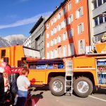 Die Feuerwehr war dabei im wahrsten Sinn des Wortes unübersehbar – das neue Spezialfahrzeug der Freiwilligen Feuerwehr Seefeld war vor Ort und die Teleskopmastbühne TMB42 ragte steil in den blauen Himmel. HLM Anton Schünemann und OLM Christian Gapp präsentieren das Fahrzeug, das mit der 42 Meter ausfahrbaren Bühne das erste seiner Art in Tirol ist und erst vor kurzem in Seefeld in Betrieb genommen wurde.