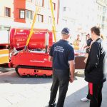 In unmittelbarer Nachbarschaft stand das LAST-1 mit Ladekran inklusive LUF60AT der Berufsfeuerwehr Innsbruck. Christian Gehri und Donatus Greyer erläuterten die interessierten Besuchern Einsatzgebiet und Wirkungsweise des imponierenden Lösch-Unterstützungsfahrzeug.