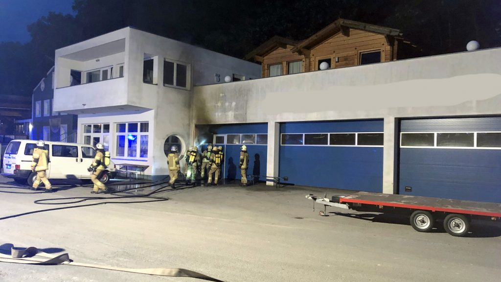 In den Morgenstunden des 07.06. gegen 04.30 Uhr wurde die Feuerwehr Landeck durch die Leitstelle Tirol zu einem Garagenbrand eines Freizeit- und Sportbetriebes am Mühlkanal im Stadtteil Bruggen mittels Sirene alarmiert.