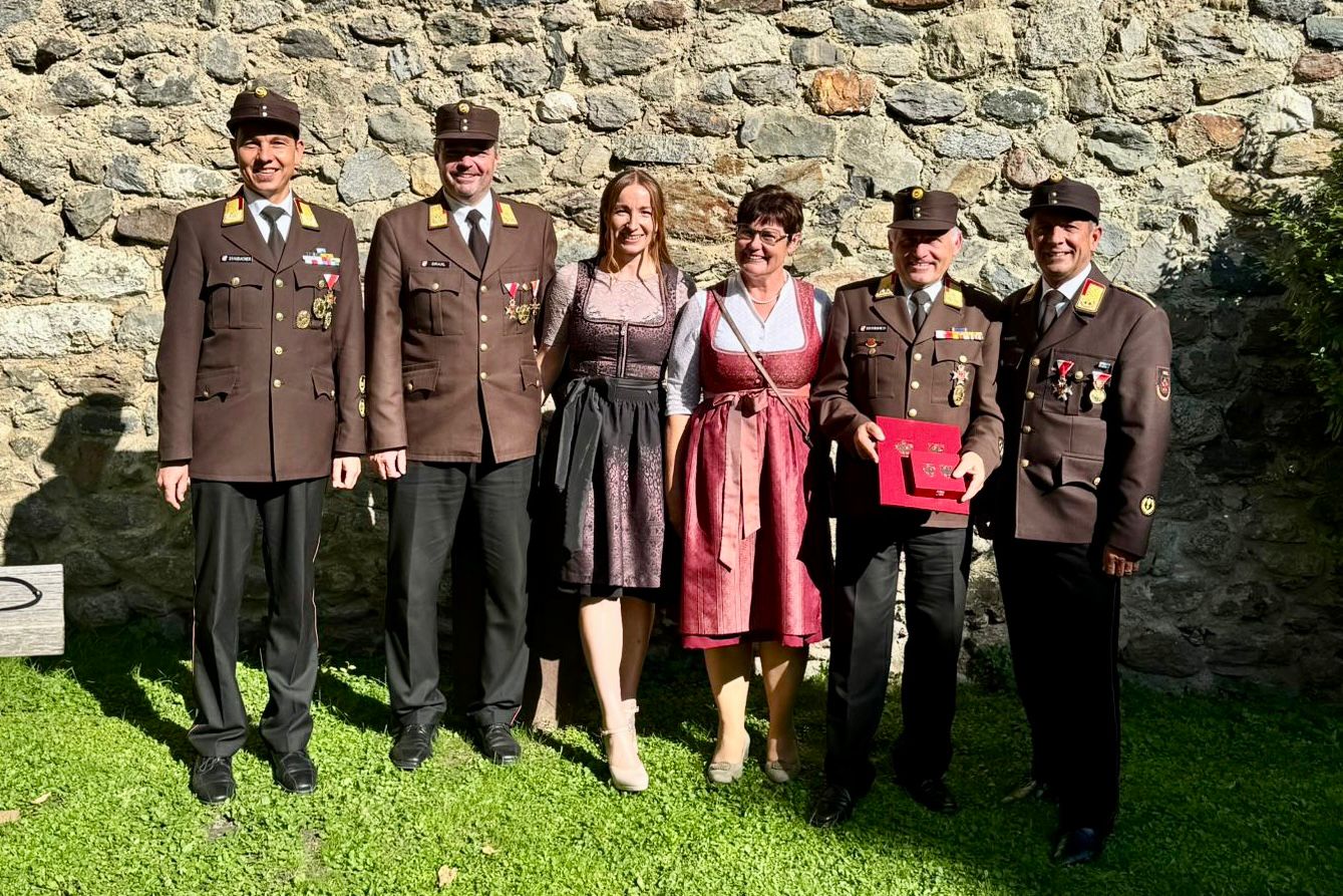 Neben seiner Frau begleiteten ihn zu dieser Auszeichnung auch Landes-Feuerwehrkommandant Jakob Unterladstätter, Landes-Feuerwehrinspektor Rene Staudacher sowie Bezirks-Feuerwehrkommandant Harald Draxl, die mit ihrer Anwesenheit die hohe Wertschätzung des Landes-Feuerwehrverbandes und des Bezirks Lienz zum Ausdruck brachten.