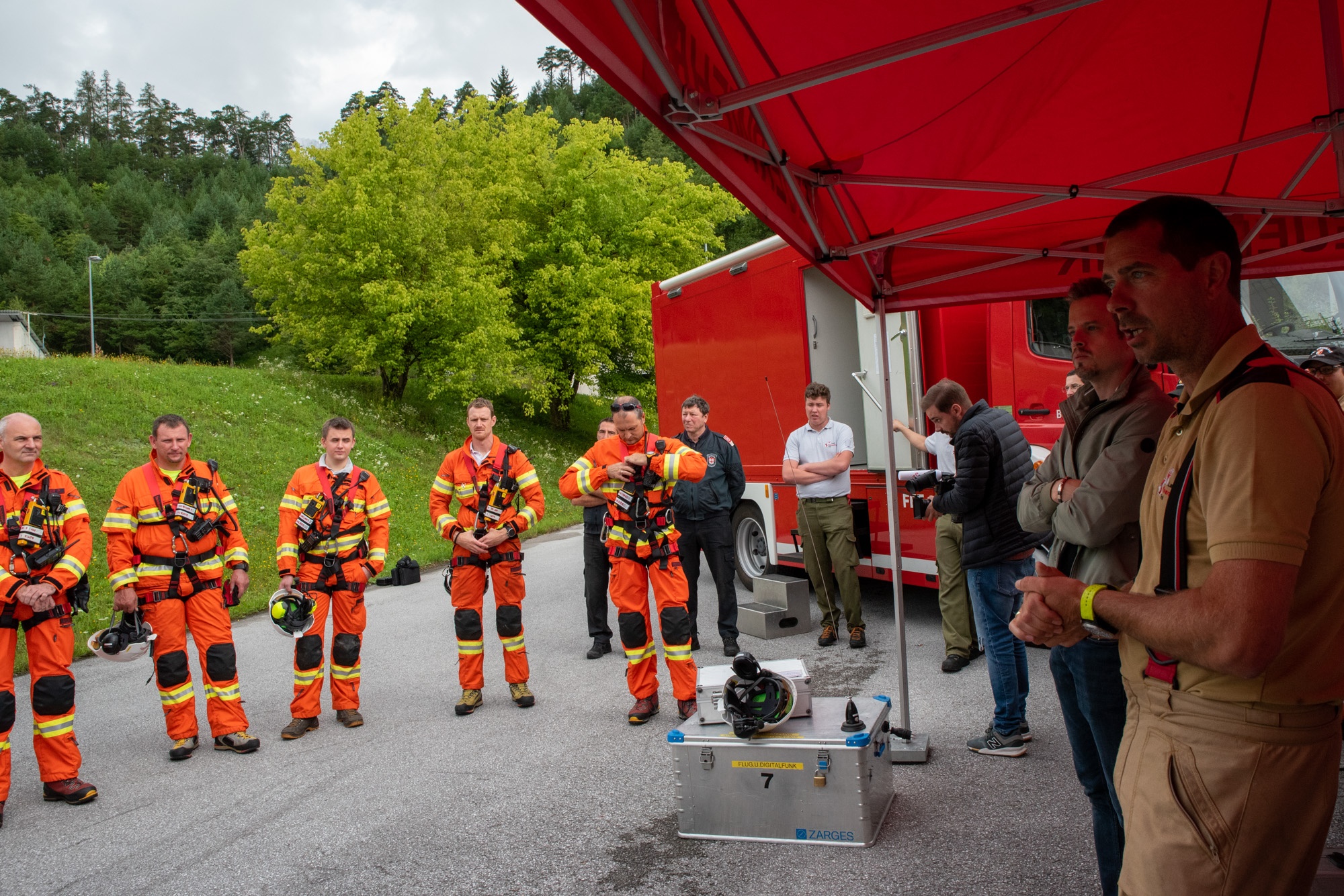 Mitten drin statt nur dabei hieß es heute bei Dreharbeiten zum Thema "Waldbrandbekämpfung" an der Landes-Feuerwehrschule Tirol: Das Team von ueberall. begleitete bei einer kleinen Übung die verschiedenen Aufgaben, welche die Feuerwehr-Einsatzkräfte bei einem Waldbrand bewältigen müssen. Besonders das Zusammenwirken der Feuerwehr-Sonderdienste Flugdienst und Bezirkszentrale mit der Einsatzleitung, wie auch die Bodenbrandbekämpfung der Einsatzkräfte im Brandraum mit Löschrucksack und Spezialgeräten standen dabei im Fokus. Unterstützt wurde die Feuerwehr durch die Crew der Libelle Tirol mit Personentransporten am Tau, Wasserabwürfen und Lasttransporten, wie es auch im Realeinsatz durch Hubschrauber erfolgt. Wir sind gespannt auf das Ergebnis!
