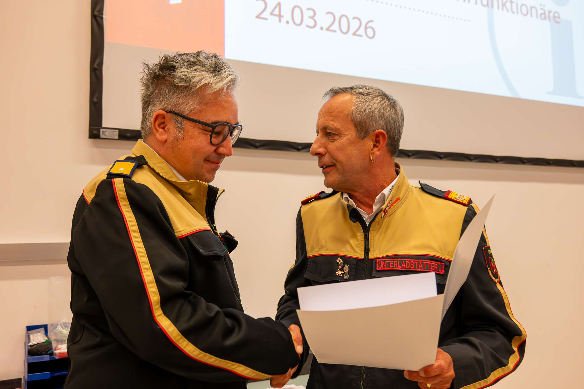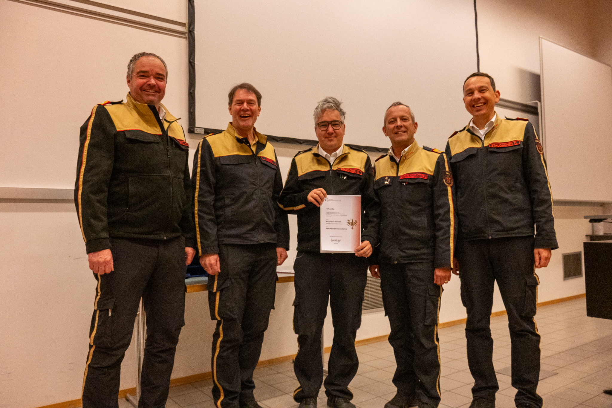 Nach den Fachvorträgen bot sich noch die Gelegenheit Christian Brugger aufgrund seiner neuen Funktion als Abschnittskomandant zum Abschnittsbrandinspektor zu befördern. Im Anschluss daran konnte bei einer kleinen Jause in der Kantine die Möglichkeit zum persönlichen Austausch genutzt werden. Die Veranstaltung klang in kameradschaftlicher Atmosphäre aus und unterstrich einmal mehr die Bedeutung von Vernetzung und Wissenstransfer innerhalb der Feuerwehrorganisation.