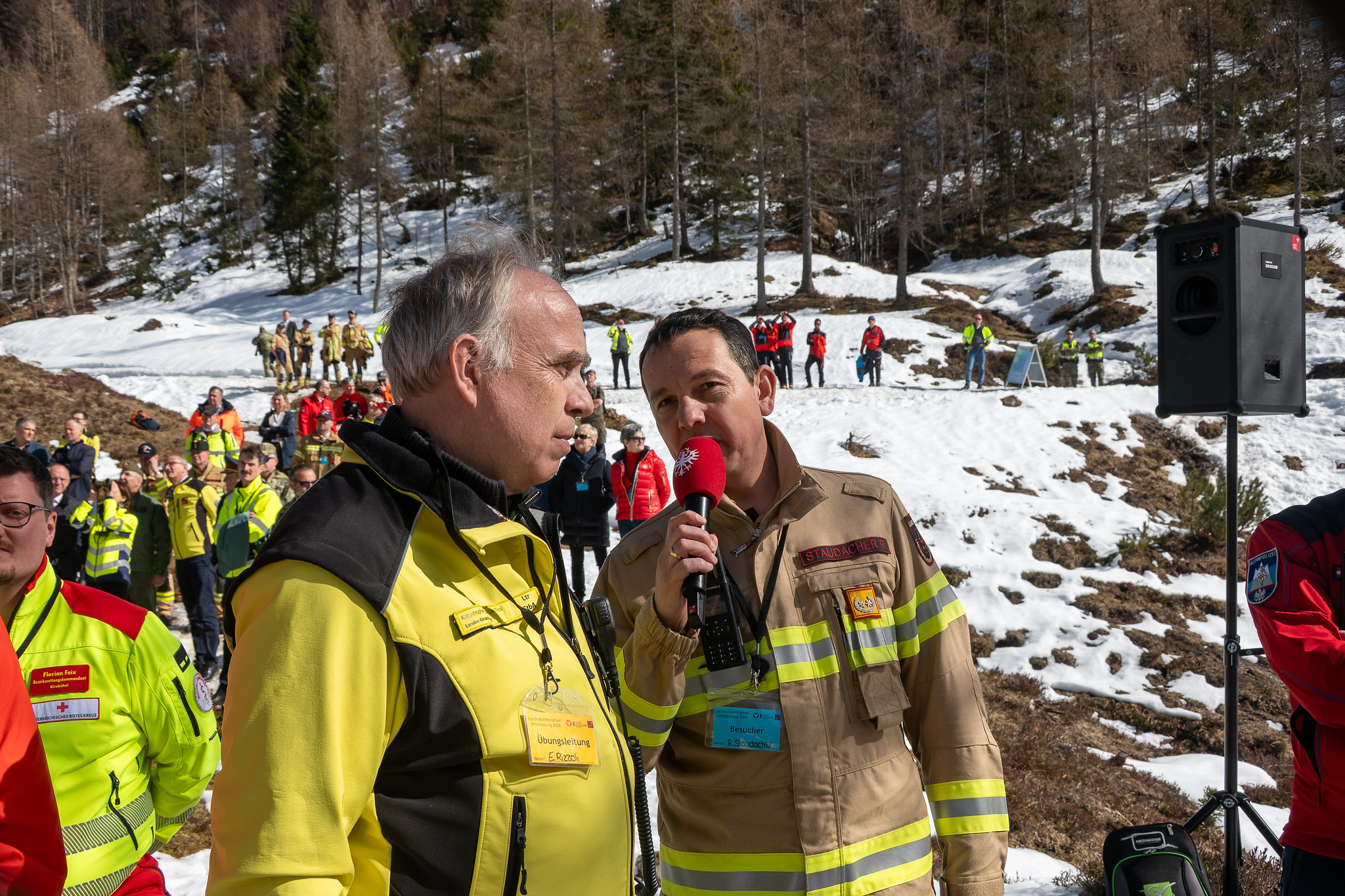 Dichter Rauch über alpinem Gelände, mehrere Hubschrauber im Rettungseinsatz, Lawinenbergungen unter extremen Bedingungen und laufende Lagebesprechungen in den Einsatzstäben: Mit der bundesländerübergreifenden Katastrophenschutzübung OLEX.26 haben die Länder Tirol und Salzburg gemeinsam mit den Einsatzorganisationen die Zusammenarbeit im Ernstfall geübt. Zwei Tage lang wurde ein forderndes und dynamisches Szenario beübt – mit klarem Fokus auf Zusammenarbeit, Führungsfähigkeit und abgestimmte Kommunikation. Insgesamt 300 Personen – rund 100 MitarbeiterInnen der Behörden sowie 200 Angehörige der Einsatzorganisationen – haben an der Übung mitgewirkt. Neben den Ländern übten bei der Katastrophenschutzübung auch Alpinpolizei, Bundesheer, Bergrettung, Rotes Kreuzes und Feuerwehr. Die Bilanz fällt sehr positiv aus.