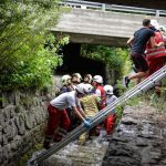 Beim Eintreffen der Feuerwehr am Einsatzort, wurde festgestellt, dass zwei Mädchen mit einem Moped von der Landesstraße in den Axamer Bach sind. Aufgrund der schwierigen Lage der verletzten Personen, ca. 5 m unterhalb der Straße im Bachbett, wurde durch den Einsatzleiter umgehend die Berufsfeuerwehr Innsbruck zur Unterstützung angefordert. Die erste Person wurde von der Besatzung des TANK 2 der FF-Völs unter Anleitung der anwesenden Notärztin geborgen und mit dem ÖAMTC-Hubschrauber C-1 in das LKH Innsbruck geflogen. Die zweite Person wurde in Zusammenarbeit der FF-Völs und der BF-Innsbruck unter Anleitung der 2. Notärztin geborgen und mit dem RTW zur weiteren Behandlung in das LKH Innsbruck gefahren.
