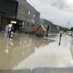 Die ganze Nacht wurde mit schwerem Geräte versucht die Geröllmassen aus dem Bachbett der Rosanna und der Zuläufe zu entfernen. Inzwischen können die Wassermassen wieder ungehindert abfließen. Die Unterführung zum Gewerbegebiet wurde geflutet und muss nun ausgepumpt werden.