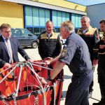 Früher war es ein Löschwasserbehälter mit 500 Liter Wasserinhalt – ab sofort kann der Landeshubschrauber mit dem neuen Löschwasserbehälter „Bambi-Bucket“ 1.000 Liter Löschwasser befördern: LH Günther Platter übergab die hochmoderne Löschvorrichtung an LFK LBD Ing. Peter Hölzl und dem Leiter der Flugeinsatzstelle Tirol, Hans Schlager, in Anwesenheit von LFI DI Alfons Gruber, Flugpolizei-Leiter Werner Senn und Jörg Degenhart (Leiter SG Flugdienst im LFV Tirol) am Standort des Landeshubschraubers in Innsbruck.