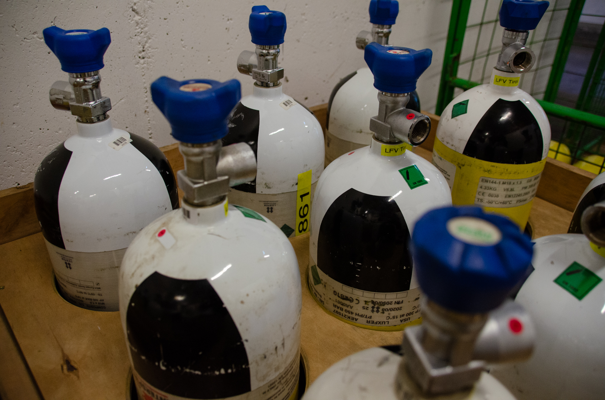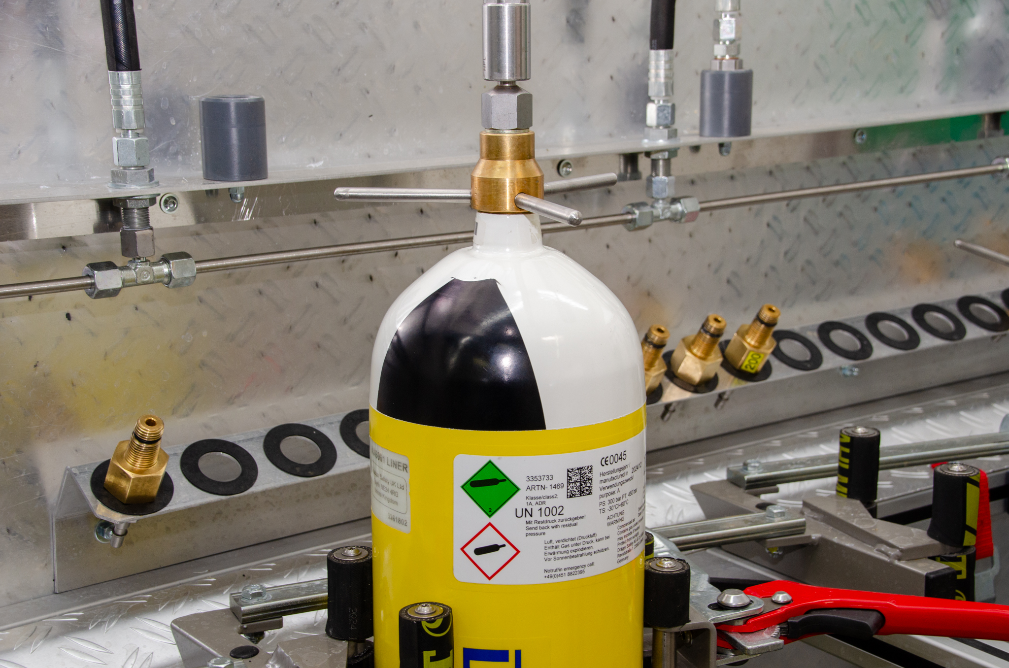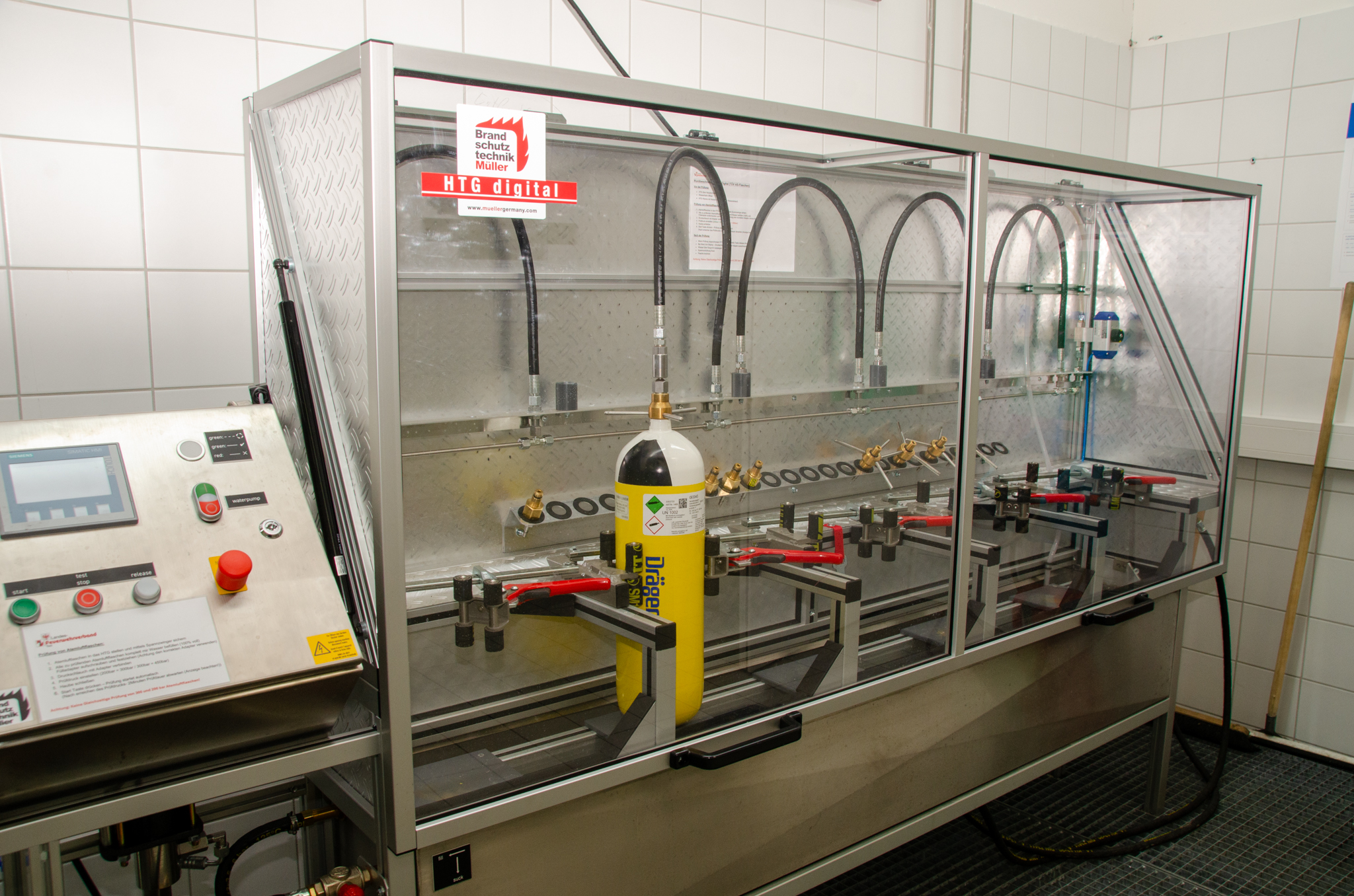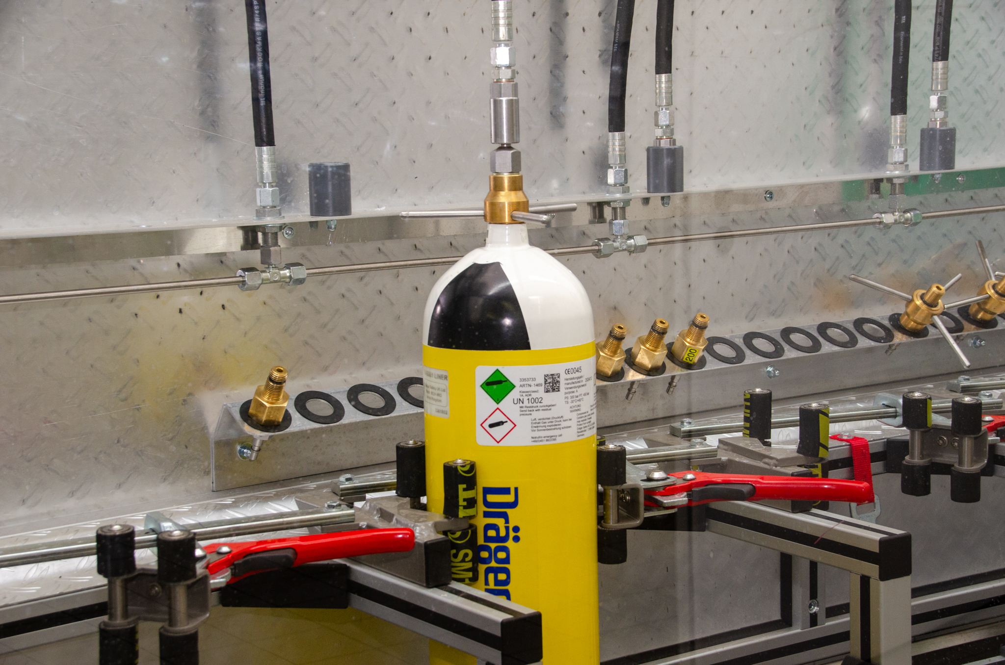 Zur weiteren Erhöhung der Sicherheit ist bei jeder Prüfserie – diese findet etwa alle zwei bis drei Monate statt – ein Verantwortlicher des TÜV Süd anwesend. Pro Termin werden innerhalb von zwei Tagen rund 200 bis 300 Flaschen serviciert und geprüft.