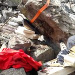Bei der Erkundung durch den Einsatzleiter LM Marco Stern gemeinsam mit dem Notarzt des Notarzthubschraubers Martin 2 stellte sich rasch heraus, dass es sich um eine aufwendige und schwierige Bergung handeln wird und es längere Zeit in Anspruch nimmt. Nach der Sicherung des Brockens mit Spanngurten begann man mit Hebekissen und zwei Spreizern den Brocken langsam zu heben. Wegen der instabilen Lage des Felsbrockens gestaltete sich das Anheben sehr schwierig und konnte nur in kleinen Schritten erfolgen. Nach ca. 40 min konnte der Schwerstverletzte befreit werden. Nach der Versorgung musste der Verletzte zum Hubschrauberlandeplatz getragen werden – wurde anschließend in die Innsbrucker Klinik geflogen.