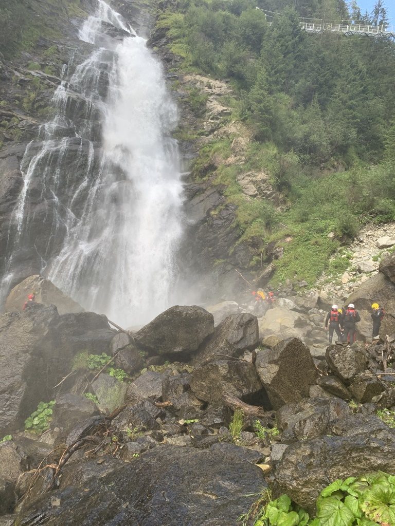 Nach einem Kletterunfall am 27.07.2020 ist eine Urlauberin aus noch ungeklärter Ursache über den Stuibenfall ca. 40m abgestürzt. Die Frau wurde von der Strömung mitgerissen und ist vermutlich in einer der Gumpen unter Wasser zu liegen gekommen. Die Berufsfeuerwehr Innsbruck wurde mit Rettungsschwimmern zur Unterstützung der Wasserrettung, der örtlichen Feuerwehren und Bergrettung alarmiert. Mit vier Rettungsschwimmern wurden in enger Absprache mit der Wasserrettung und der Bergrettung sämtliche erreichbaren Stellen abgesucht bzw. mit Einreißhaken der Boden „sondiert“. Nach mehrstündiger ergebnisloser Suche wurde durch die Polizeieinsatzleitung entschieden, die Suchaktion abzubrechen und am Folgetag in den frühen Morgenstunden wieder fortzusetzen.