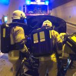 Sirenenalarm für die Feuerwehr Landeck am Sonntag, dem 02.September: gegen 19:30 Uhr stand ein Pkw im Strenger Tunnel in Flammen!