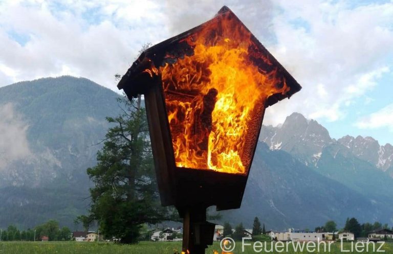 Am 14.05.18, kurz nach 07:00 Uhr, wurde die Feuerwehr Lienz mittels Pager zu einem nicht alltäglichen Einsatz alarmiert. Es handelte sich um ein brennendes Wegkreuz,