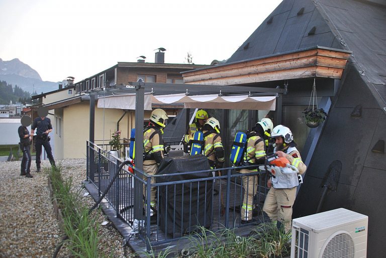 Gegen 03:45 Uhr des 23.06.2018 brach in einem Mehrparteienhaus in der Haller Altstadt ein Brand im Dachgeschoß aus. Beim Eintreffen der alarmierten Einsatzkräfte stand der
