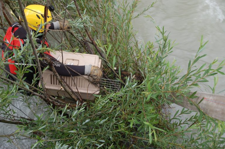 Ob Mensch oder Tier: Die Berufsfeuerwehr ist zur Stelle, wenn Lebensgefahr besteht – so auch bei einer Katze, die in der Sill zu ertrinken drohte!