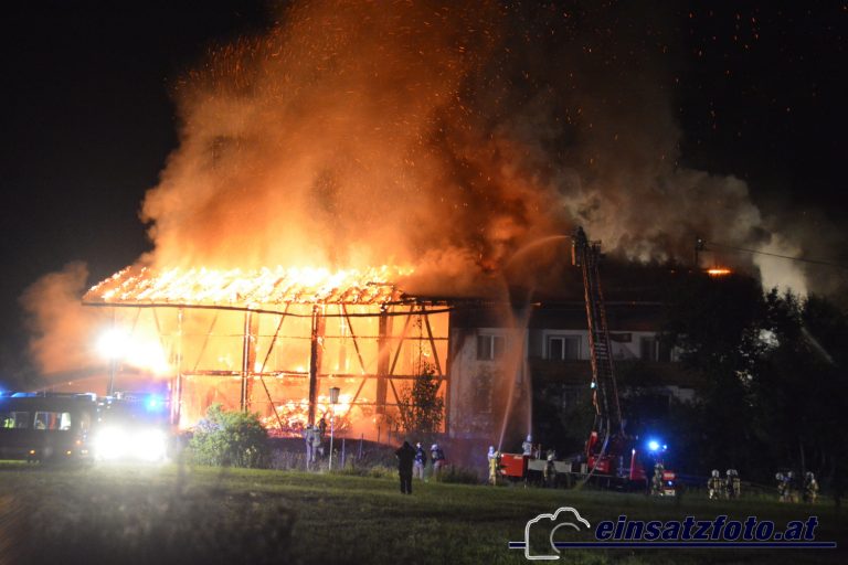 Am Sonntag, 01.07.2018 um 02:20 Uhr wurden die Feuerwehren zu einem Großbrand in Erpfendorf alarmiert. Die Bewohner und Tiere konnten gerettet werden und ein übergreifen