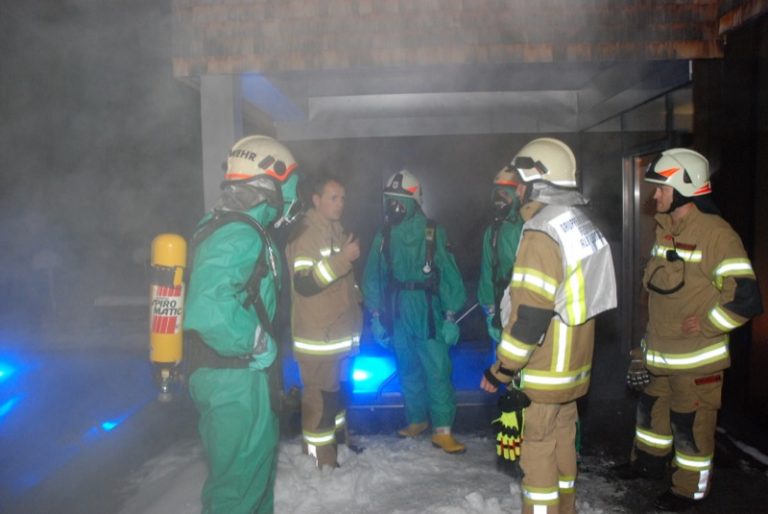 „Gebäudebrand Sonderbau – Kindergarten Wenns / Musikschule Pitztal mit mehreren eingeschlossenen und vermissten Personen“ – so lautete die Übungsannahme der Abschnittsübung in Wenns. Die Feuerwehr