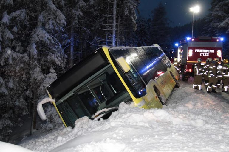 Glück im Unglück hatten die Fahrgäste eines Skibuses in Hochfügen. Ein vollbesetzter Skibus kam auf der Fahrt von Hochfügen Richtung Fügen aus bisher ungeklärter Ursache trotzt