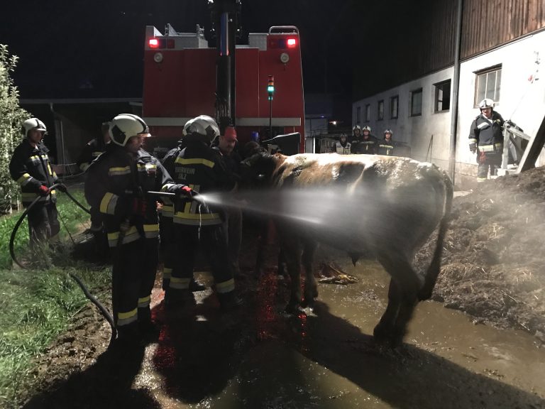 Zur Rettung einer in eine Jauchegrube gestürzten Kuh wurde die Feuerwehr Silz am 13. September um 19:48 alarmiert. Beim Eintreffen am Einsatzort wurde das Tier