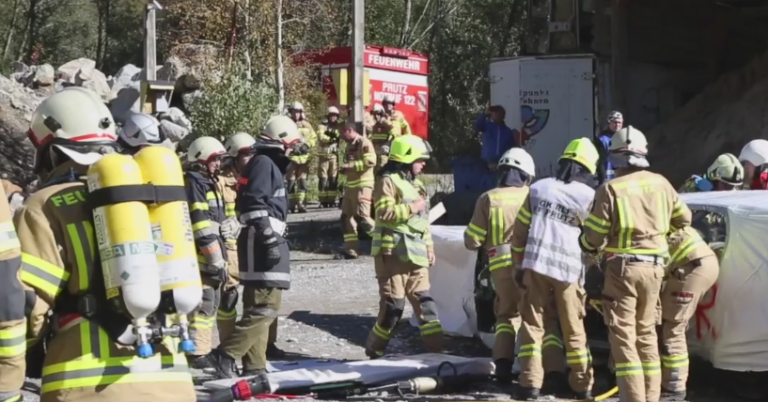 Bezirksübungstag des Bezirksfeuerwehrverbandes Kufstein am Samstag, 14. Oktober 2017, auf dem Areal SPZ Zementwerk Eiberg in Kufstein/Schwoich. 40 Feuerwehren aus dem Bezirk Kufstein und die