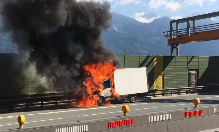 Klein-Lkw ging nach dem Tunnel in Flammen auf!