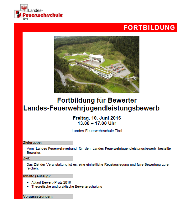 Der 34. Landes- Jugendleistungsbewerb, welcher am 30.06.2018 in Rattenberg abgehalten wird dient zugleich der Qualifikation zum 22. Bundes-Jugendleistungsbewerb. Dieser findet vom 23.-26. August 2018 in Wien