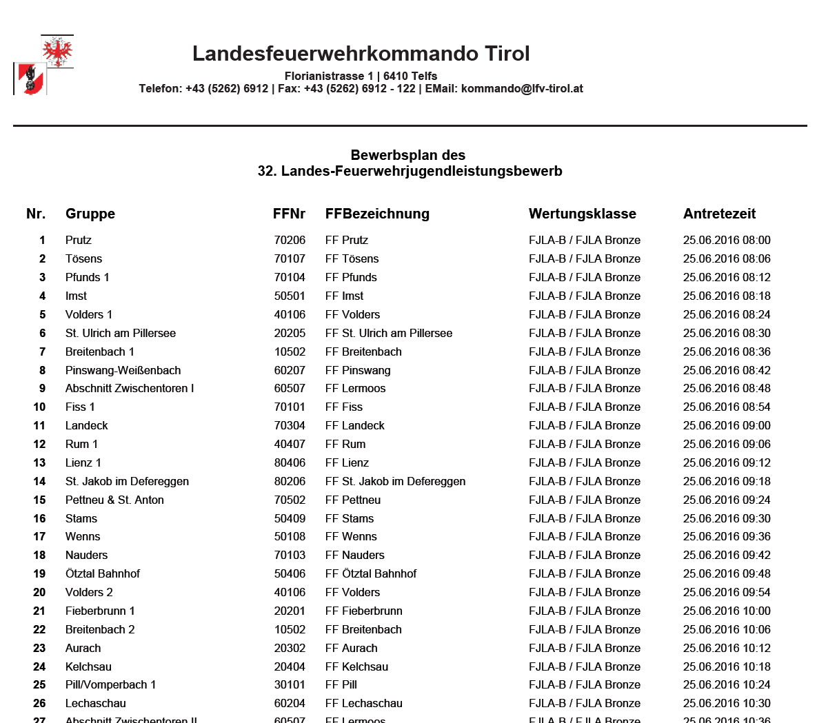 Der Zeitplan für den 32. Landes-Jugendleistungsbewerb vom 24. – 26.06.2016 in Prutz (Bezirk Landeck) steht ab sofort als Download zur Verfügung! Dokument: [wpdm_package id=’5694′]