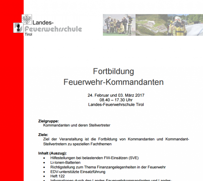 Für den 25. Bewerb um das Feuerwehrleistungsabzeichen in Gold (16. und 17.11.2018 an der Landes-Feuerwehrschule Tirol) stehen nachfolgende Übungsbeispiele als Download zur Verfügung. Diese sind
