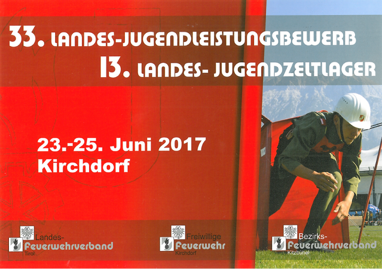 Der 33. Landes-Feuerwehrjugendleistungsbewerb mit 13. Landes-Zeltlager wird vom 23.-25. Juni 2017, in Kirchdorf, Bezirk Kitzbühel durchgeführt. Zu diesem Bewerb sind alle Feuerwehrjugendgruppen herzlich eingeladen! Die