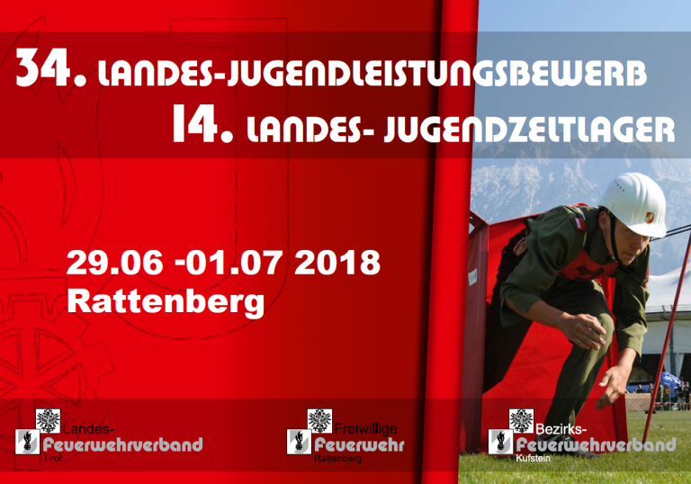 Der 34. Landes-Feuerwehrjugendleistungsbewerb mit 14. Landeszeltlager findet vom 29. Juni – 01. Juli 2018 in Rattenberg, – Bezirk Kufstein statt. Zu diesem Bewerb sind alle
