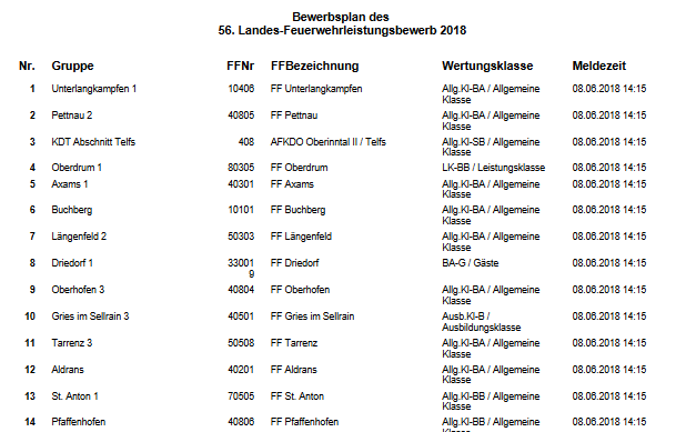 Für den 56. Tiroler Landes-Feuerwehrleistungsbewerb in Polling, Bezirk Innsbruck-Land (08. und 09. Juni 2018) haben sich 305 Gruppen aus Tirol, Südtirol, den österreichischen Bundesländern, der BRD