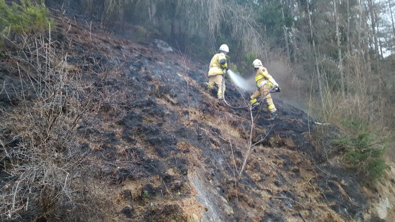 Mittels Sirene und Sammelruf wurde die FF Wenns in der Vorwoche um 12:41 Uhr zu einem Brand einer rund 50m² großen Böschung unterhalb der L16 Pitztalstraße