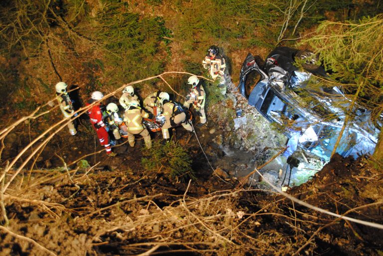 In der Nacht von Freitag auf Samstag kam es auf dem Hagsteinweg in Kitzbühel zu einem Autoabsturz. Ein talwärts fahrender Autolenker kam aus ungeklärter Ursache