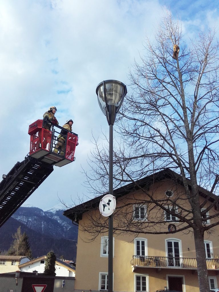 Am Freitag, dem 10. März musste die Feuerwehr Schwaz zum Einsatzklassiker schlechthin ausrücken: Katze im Baum, so die Meldung am Pager! Schon beim Eintreffen zeigte