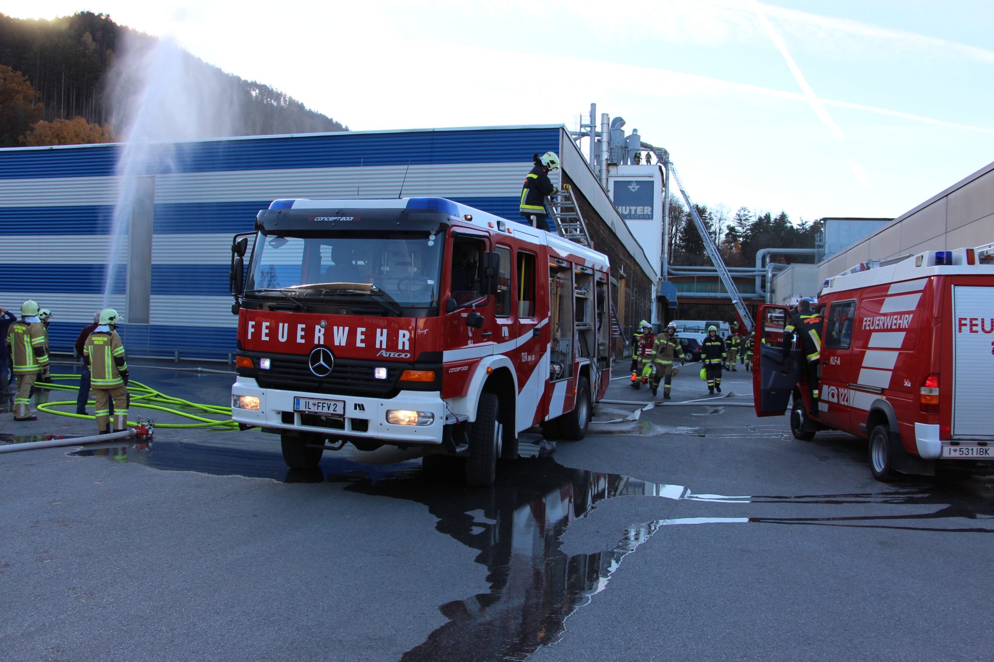 Am Samstag, den 7. November 2015, fand bei der Firma Huter & Söhne im Sieglanger eine Großübung mit drei Feuerwehren statt. Neben der zuständigen Feuerwehr