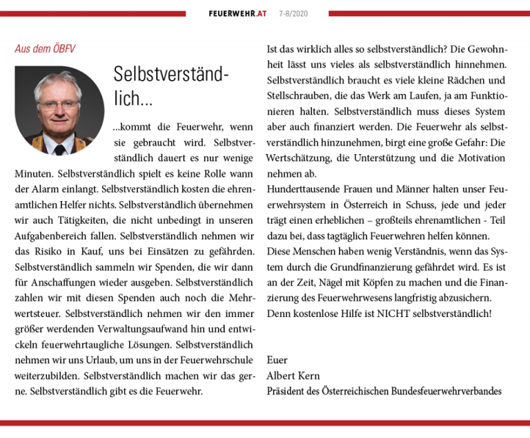 Vorwort des Präsidenten des Österreichischen Bundesfeuerwehrverbandes aus der aktuellen Feuerwehr.AT
