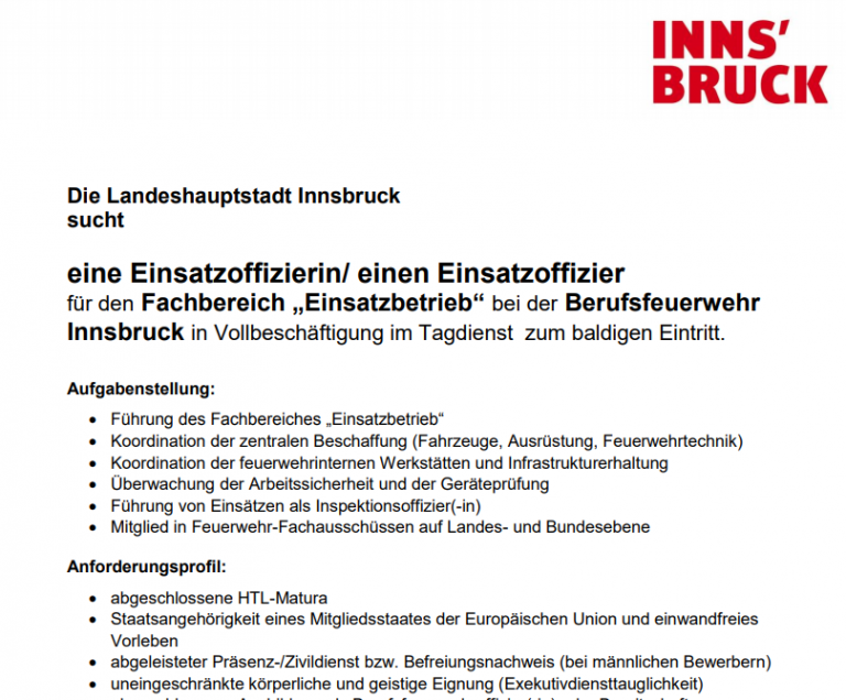 Stellenausschreibung Berufsfeuerwehr Innsbruck