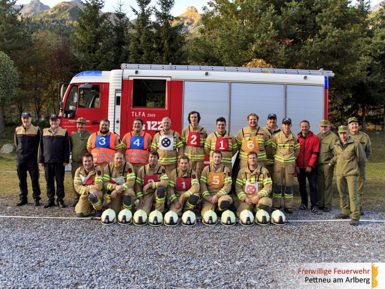 Eine weitere Gruppe der Feuerwehr Pettneu besteht die Technische Leistungsprüfung Form A in Gold! Dem wachen Auge der Bewerter stellten sich die 12 Mann der